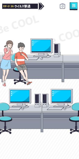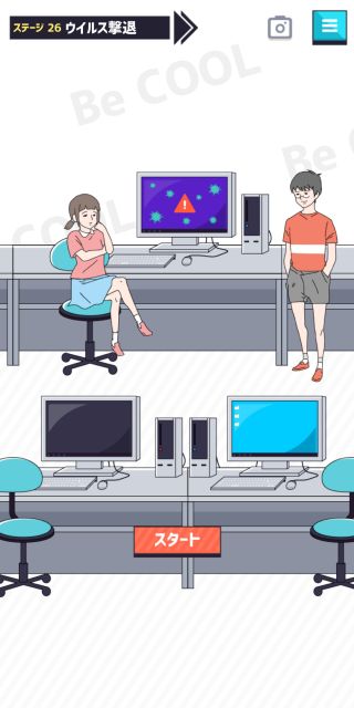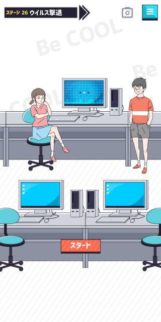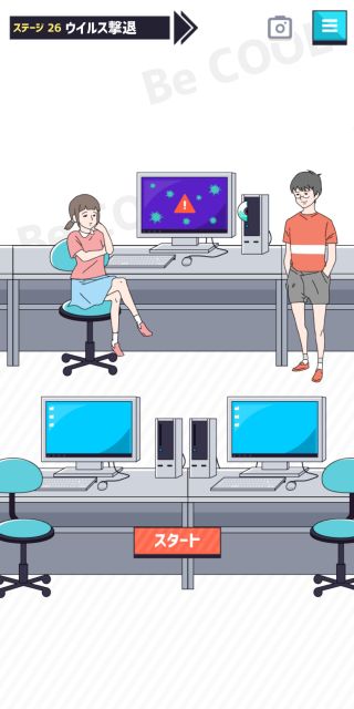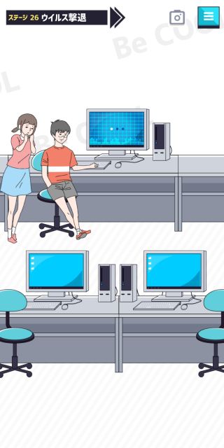イケボーイ -脱出ゲーム 無料 4.1 評価する 送信する GLOBAL GEAR, K.K. ステージ26 ウイルス撃退 左下のパソコン本体をタップして電源を入れる。 もう一度タップして「ディスク」を入手。 上のパソコン本体に「ディスク」を入れる。 『スタート』を押す。 ミニゲームをクリアする。 ステージ1 あいあいがさ1 ステージ2 アンバランス ステージ3 バーテンダー1 ステージ4 リフティング ステージ5 階段すべり ステージ6 ゴミ箱シュート ステージ7 荷物はこび ステージ8 ゲームセンター1 ステージ9 テーブルクロス ステージ10 バーベルあげ ステージ11 あいあいがさ2 ステージ12 ボールまわし ステージ13 ゲームセンター2 ステージ14 名探偵 ステージ15 公園デート ステージ16 きもだめし ステージ17 バレンタインチョコ ステージ18 演劇スター ステージ19 はち騒動 ステージ20 射的 ステージ21 バーテンダー2 ステージ22 荒野の決闘 ステージ23 ソロコンサート ステージ24 原始時代 ステージ25 クッキング ステージ31 プロポーズ シールコレクション No.001~010 シールコレクション No.011~020 シールコレクション No.021~030 シールコレクション No.031~040 シールコレクション No.041~050 シールコレクション No.051~060 シールコレクション No.061~070 シールコレクション No.071~080 シールコレクション No.081~090 シールコレクション No.091~100 ステージ26 ウイルス撃退 ステージ27 アンバランス2 ステージ28 応援合戦 ステージ29 ヒロイン救出 ステージ30 伝説の剣 シールコレクション No.101~110 シールコレクション No.111~117