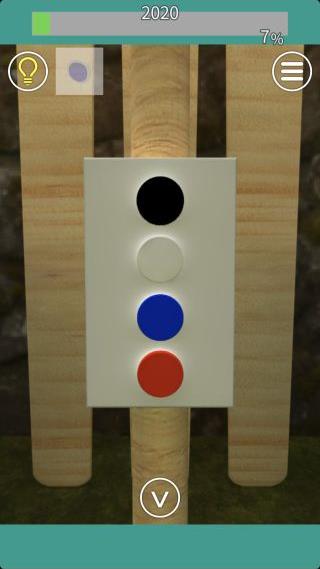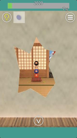 障子の穴から見えるダルマの色『黒白青赤』を確認。