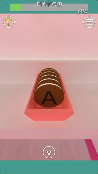 中のお菓子に書かれている文字が『A、C、D、C、A』の順なのを確認。