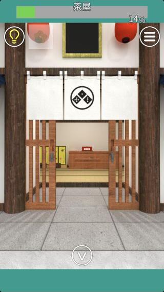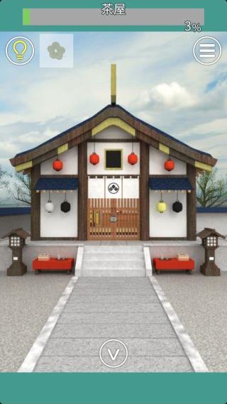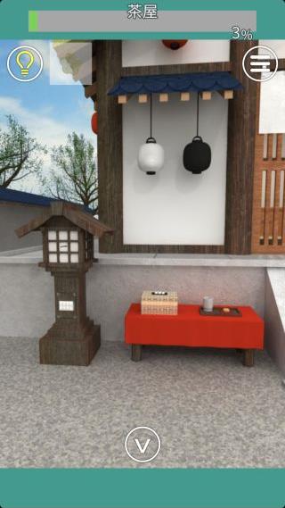 建物の前に移動して、左右の壁の4つの提灯の色を確認。