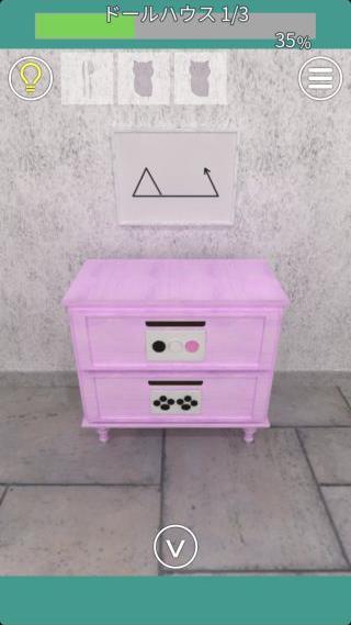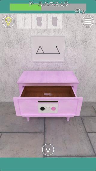 右の棚の上の引き出しを拡大して、『白、黒、ピンク、白、白、ピンク、黒』の順で押す。