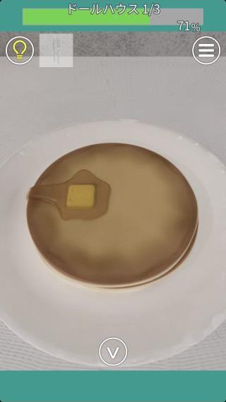 ホットケーキを「ナイフとフォーク」で食べて、『EAT』を確認。