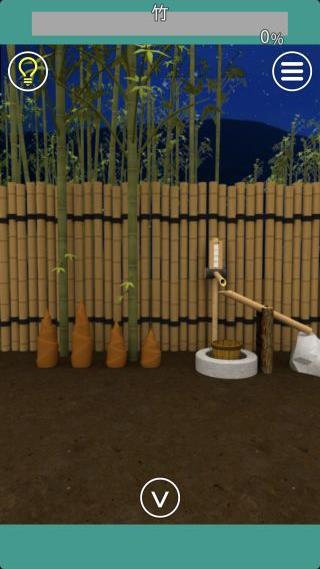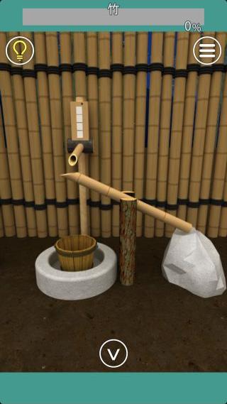 4つのタケノコの高さを確認して、右の鹿威しの前へ。
