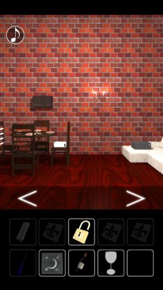 「ワイン」を左の3つのグラスに注いで、「鍵」を入手。