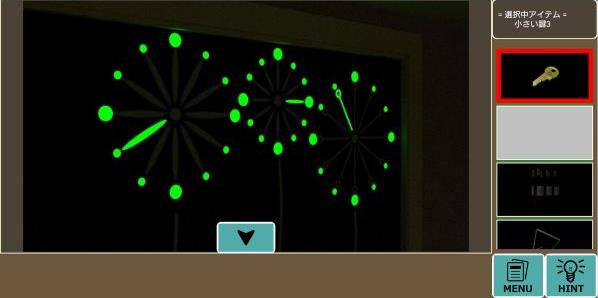 喫煙ルームに入って、『長針=8、短針=3、秒針=11』を確認。