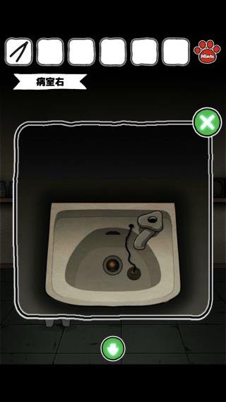 洗面台を拡大して、「ピンセット」を使って「注射器」を入手。