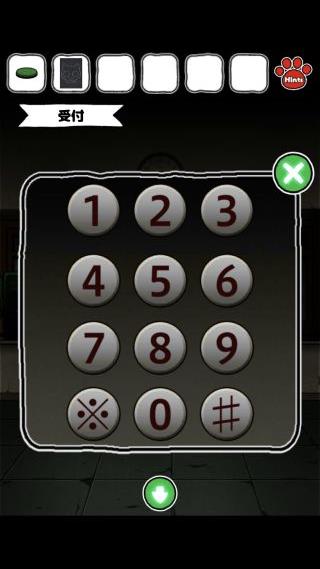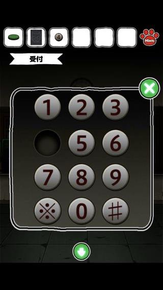 「緑色のボタン」を入手して、受付まで移動。