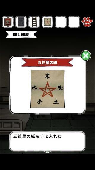 ベッドの枕を持ち上げて、「五芒星の紙」を入手。