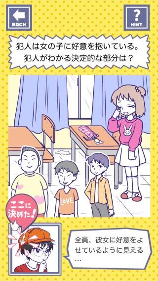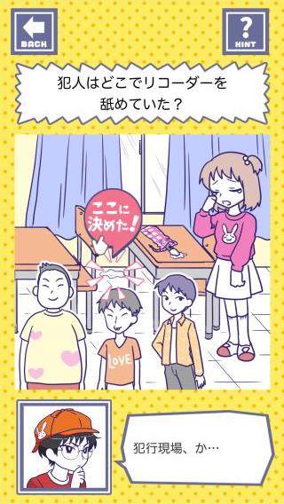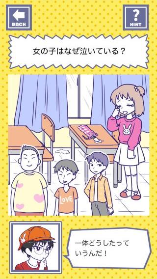 謎解き〜おバカから脱出なるか〜 無料 3.7 評価する 送信する New Story Inc. 少女を襲った悲しい事件 机の上の濡れたリコーダーをタップする。 カーテンの下の濡れた床をタップする。 左下の帽子のウサギをタップする。 クサイにおい事件 先生激おこ事件 ハムスター脱走事件 かくれんぼ神隠し事件 給食の時間におきた事件 授業中の落書き事件 校長カツラ紛失事件 謎の心霊写真事件 少女を襲った悲しい事件 シャイなラブレター事件