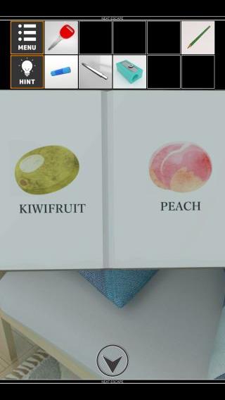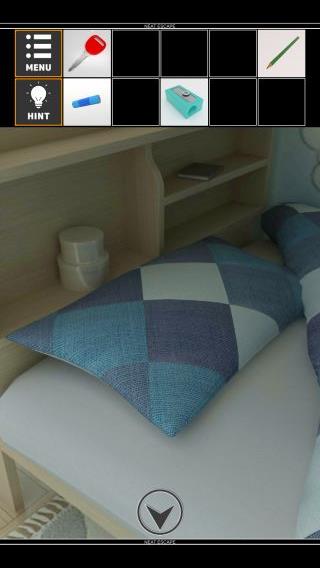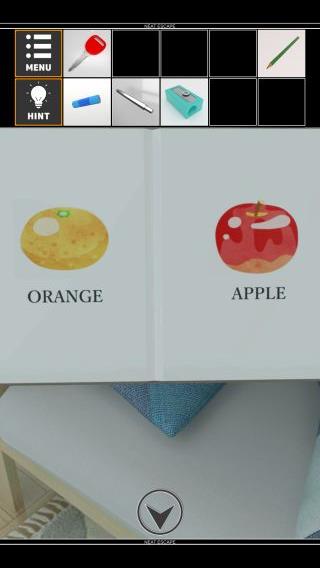 脱出ゲーム 子供部屋からの脱出2 男の子編 無料 3.8 評価する 送信する NEAT ESCAPE 攻略その2 左の2段ベッドの上に移動。 箱を拡大。 先ほどの立方体のフルーツの配置に合わせる。 「鉛筆削り」を入手して、「鉛筆」を削る。 2段ベッドの下に移動。 枕を持ち上げて、「棒」を入手。 奥の本を調べて、4つのフルーツの英語表記を確認。 攻略その1 攻略その2 攻略その3 攻略その4 攻略その5 攻略その6 攻略その7 攻略その8