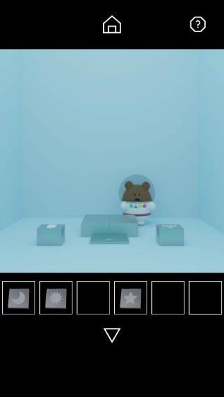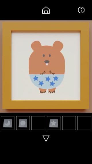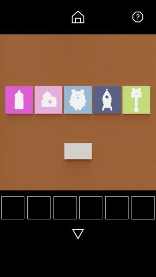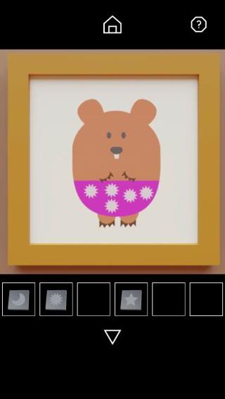 最後の装置のヒントは、ベッドを上から見て動物の服の色と上の小物の組み合わせとなる。