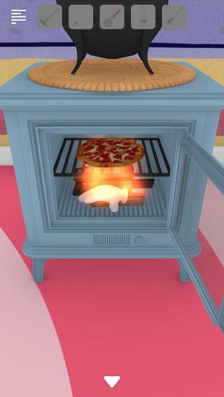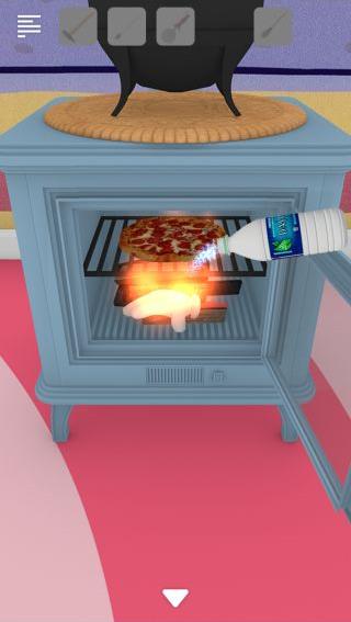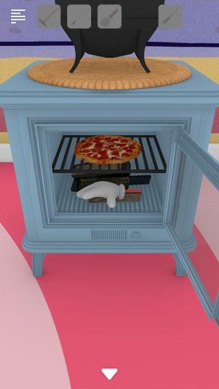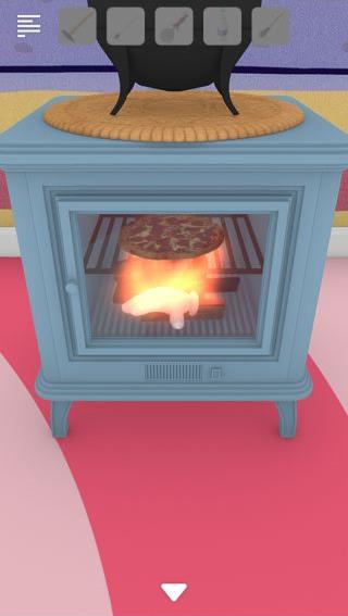 お菓子の家の中に移動して、奥のストーブを拡大。