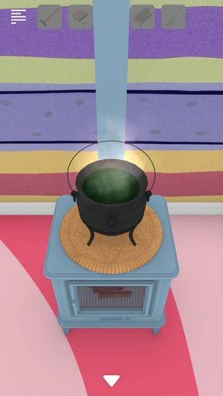 ストーブの上の鍋を「手袋」で持ち上げる。