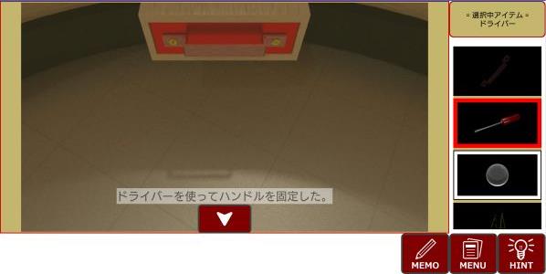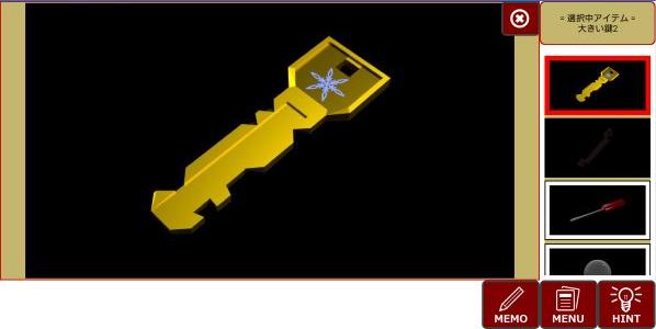 「大きい鍵2」を入手して、引き出しの中の数字の順で『右下、右上、左下、右上、左上、右上、左上』を確認。
