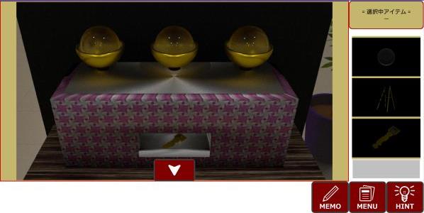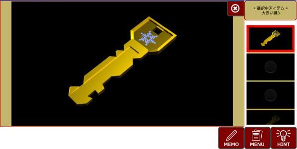 3つの「丸いクリスタル」をセットして、「大きい鍵3」を入手。
