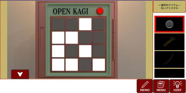 先ほどのアルファベットの並びをヒントに、『OPEN KAGI』の文字の位置のボタンを押す。
