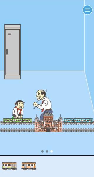右に移動して、先ほどのモニターをヒントに左下に「オレンジのラインの電車」、右下に「オレンジと緑のラインの電車」を置く。