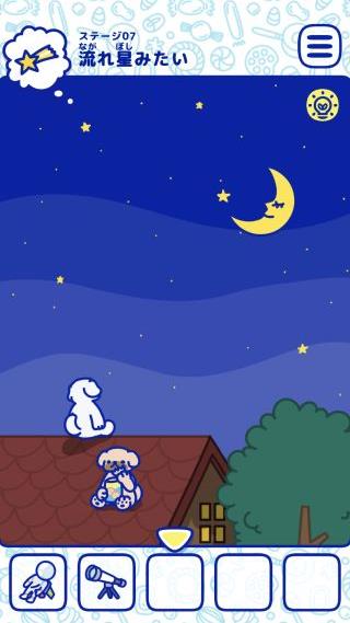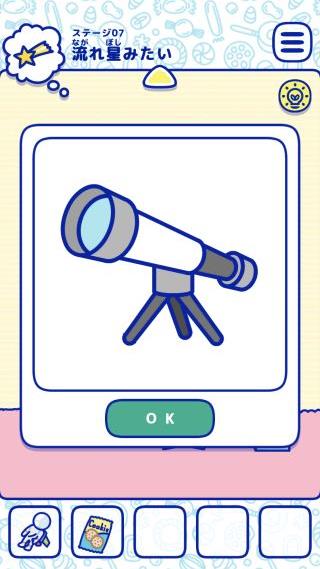 屋根の上に「クッキー」を置いて、キャンディに「望遠鏡」を渡す。