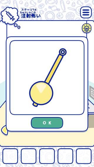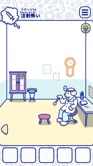 脱出ゲーム ハッピーキャンディ 無料 4.1 評価する 送信する THE STRIPPERS Co., Ltd ステージ14 注射怖い 右に移動。 時計を調べて、「振り子」を入手。 医者に渡す。 左に移動して、呼び出されたら右の扉を開ける。 ステージ01 ボールで遊びたい ステージ02 ボールで遊びたい2 ステージ03 スケボー映え ステージ04 アメがほしい ステージ05 風船とって ステージ06 ボールとりたい ステージ07 流れ星みたい ステージ08 金のオノ銀のオノ ステージ09 スケート映え ステージ10 トイレ行きたい ステージ11 おやつの時間 ステージ12 リンゴ食べたい ステージ13 グッズ買いたい ステージ14 注射怖い ステージ15 ブーケとりたい ステージ16 BMX映え ステージ17 マキ割り ステージ18 怪盗キャンディ ステージ19 ババぬき ステージ20 クリ拾い ステージ21 クレーンゲーム ステージ22 モモ狩り ステージ23 かくれんぼ ステージ24 落ちる コレクション No.001~010 コレクション No.011~020 コレクション No.021~030 コレクション No.031~040 コレクション No.041~050 コレクション No.051~060 コレクション No.061~070 コレクション No.071~080 コレクション No.081~090 コレクション No.091~100 コレクション No.101~110 コレクション No.111~121 キャラクター No.001~016 キャラクター No.017~031