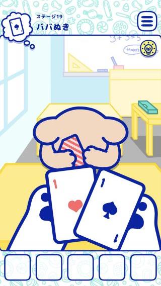 脱出ゲーム ハッピーキャンディ 無料 4.1 評価する 送信する THE STRIPPERS Co., Ltd ステージ19 ババぬき 右奥から「ハサミ」を入手。 相手のカードをどちらでも良いので1枚引く。 左で音がして相手の注意がそれる。 相手が見ていないスキにジョーカーに「ハサミ」で切れ込みを入れて、相手に引かせる。 切れ込みの無いカードを引く。 ステージ01 ボールで遊びたい ステージ02 ボールで遊びたい2 ステージ03 スケボー映え ステージ04 アメがほしい ステージ05 風船とって ステージ06 ボールとりたい ステージ07 流れ星みたい ステージ08 金のオノ銀のオノ ステージ09 スケート映え ステージ10 トイレ行きたい ステージ11 おやつの時間 ステージ12 リンゴ食べたい ステージ13 グッズ買いたい ステージ14 注射怖い ステージ15 ブーケとりたい ステージ16 BMX映え ステージ17 マキ割り ステージ18 怪盗キャンディ ステージ19 ババぬき ステージ20 クリ拾い ステージ21 クレーンゲーム ステージ22 モモ狩り ステージ23 かくれんぼ ステージ24 落ちる コレクション No.001~010 コレクション No.011~020 コレクション No.021~030 コレクション No.031~040 コレクション No.041~050 コレクション No.051~060 コレクション No.061~070 コレクション No.071~080 コレクション No.081~090 コレクション No.091~100 コレクション No.101~110 コレクション No.111~121 キャラクター No.001~016 キャラクター No.017~031