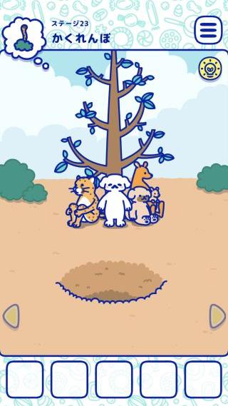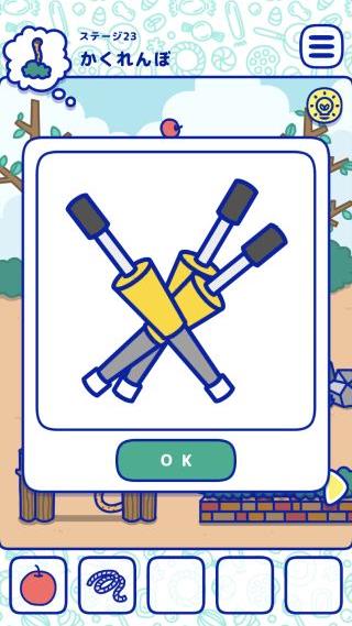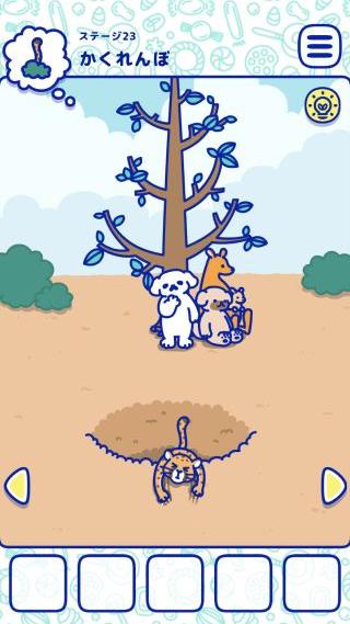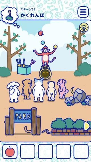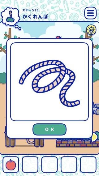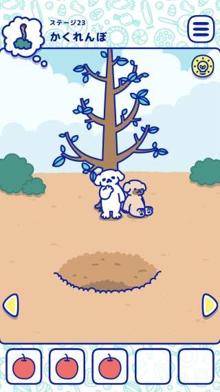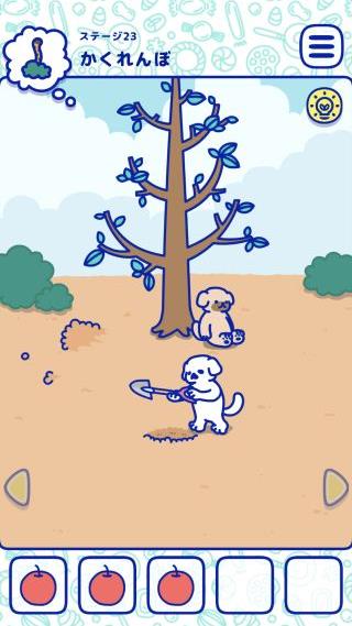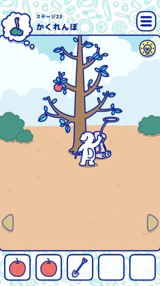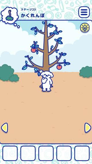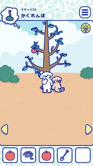 犬を見つけて、木のリンゴに「ロープ」を使う。