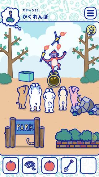 象に3つの「リンゴ」を渡して、カンガルーを見つける。