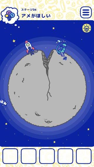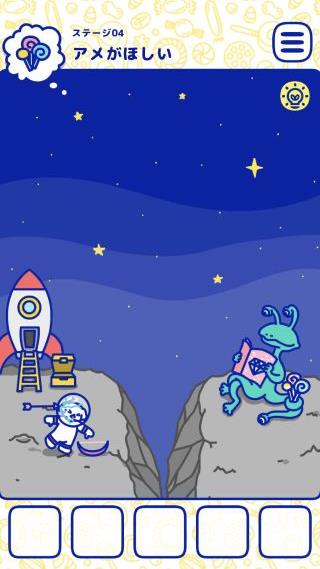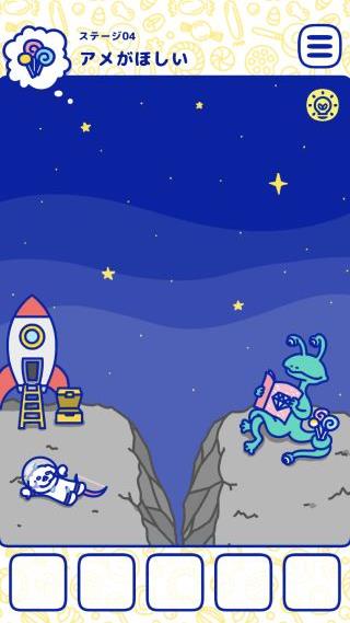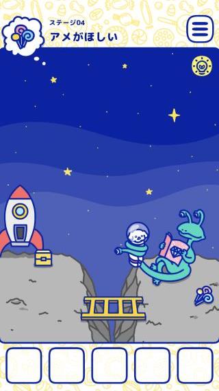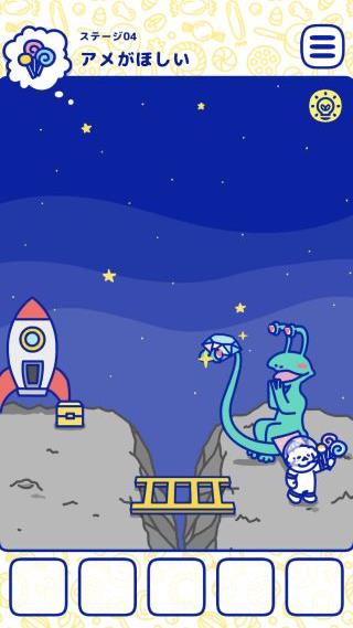 ステージ4で、「ハシゴ」を崖の上に置いてアメをタップする。