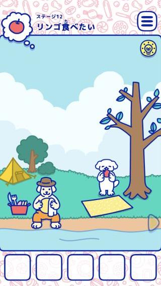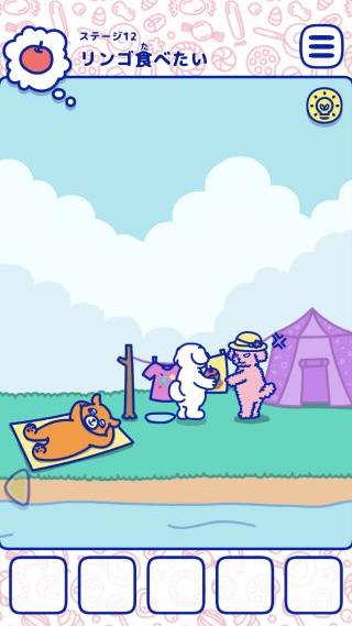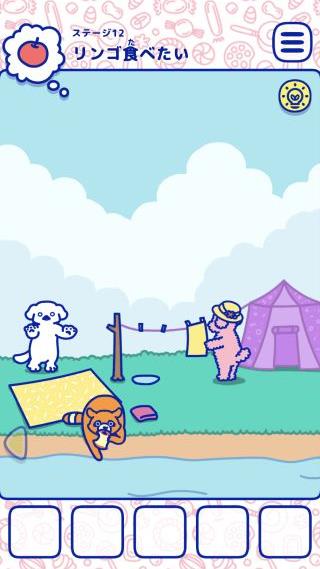 「汚れたリンゴ」を入手して、右に移動して干してあるシャツをタップで落とす。