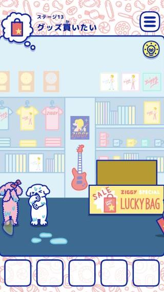 ステージ13で、「バナナの皮」を地面に使って店員を動かす。
