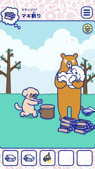 ステージ17で、「蜂蜜」をクマに渡さずに全てのマキを割る。