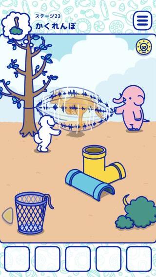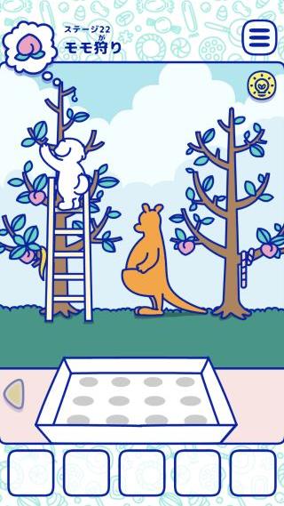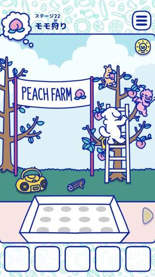 ステージ22で、右の木の中央右のモモ?をタップする。
