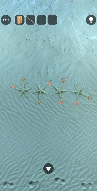 ヒトデを拡大して、巻き貝と旗の位置関係を確認。