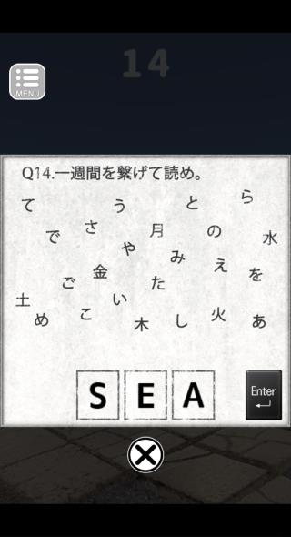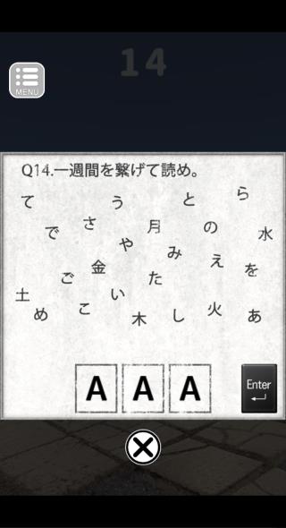 脱出ゲーム ストレンジパークからの脱出 無料 4.0 評価する 送信する なんかいいね おまけの謎解き その2 ステージ11 『おきなわ』 ステージ12 『くうき』 ステージ13 『16』 ステージ14 『SEA』 ステージ15 『ラブソング』 攻略その1 攻略その2 攻略その3 攻略その4 攻略その5 攻略その6 攻略その7 攻略その8 おまけの謎解き その1 おまけの謎解き その2