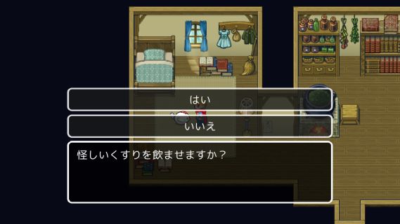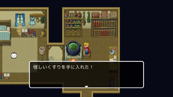 「怪しいくすり」を入手して、左のニワトリの前へ。