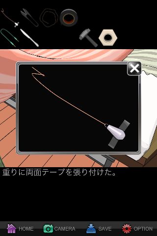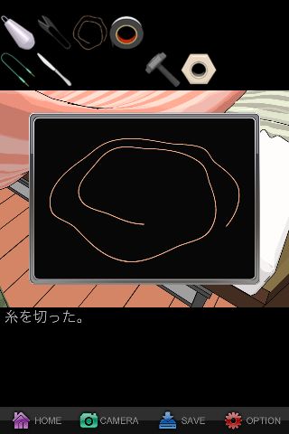 布団をめくって「握りバサミ」を使って、「糸」を入手。