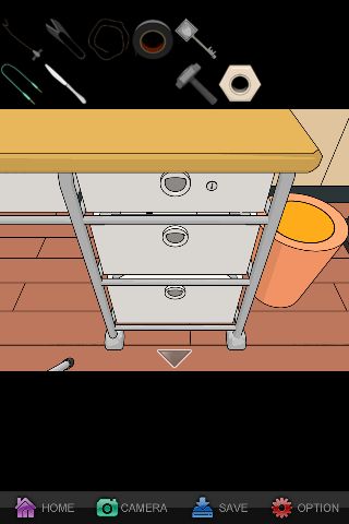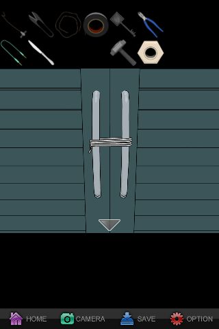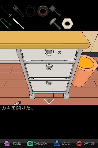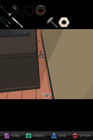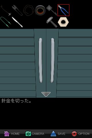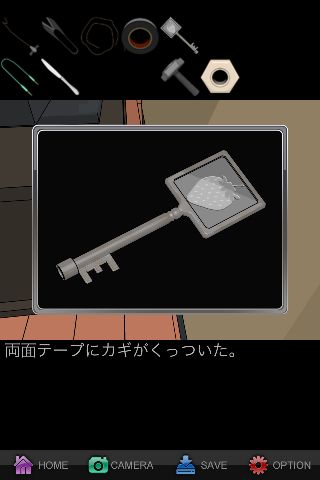 右から後ろを覗きこんで、「糸と重り」を使って「カギ」を入手。