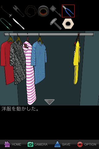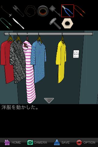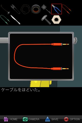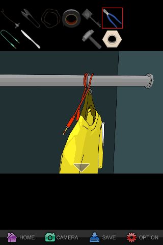 黄色い洋服のハンガーから「赤いケーブル」を入手。