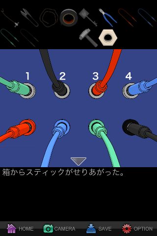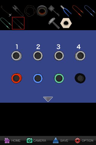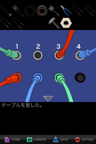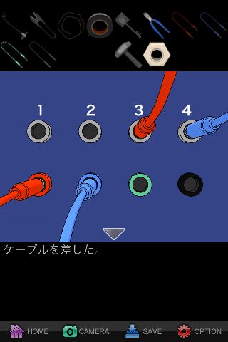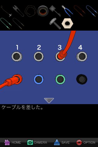 「赤いケーブル」を『3』へ、「青いケーブル」を『4』に差し込む。