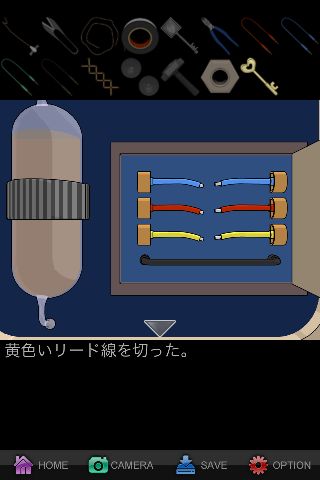 脱出ゲーム: 内密の欲情 無料 0 評価する 送信する IDAC CO.,LTD.(WaveA PTE.LTD.) 攻略その10 パソコンのファイルをヒントに、『赤→青→黄』の順で「ニッパー」で切る。 ※ コードを切らなかったり、間違った順番で切って脱出すると、爆発してバッドエンドになる。 「カギ」で開けて脱出。 攻略その1 攻略その2 攻略その3 攻略その4 攻略その5 攻略その6 攻略その7 攻略その8 攻略その9 攻略その10
