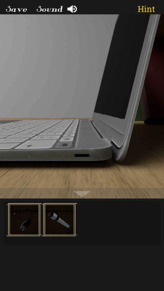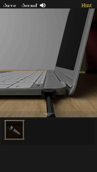 左に移動して、机の上のノートパソコンを拡大。