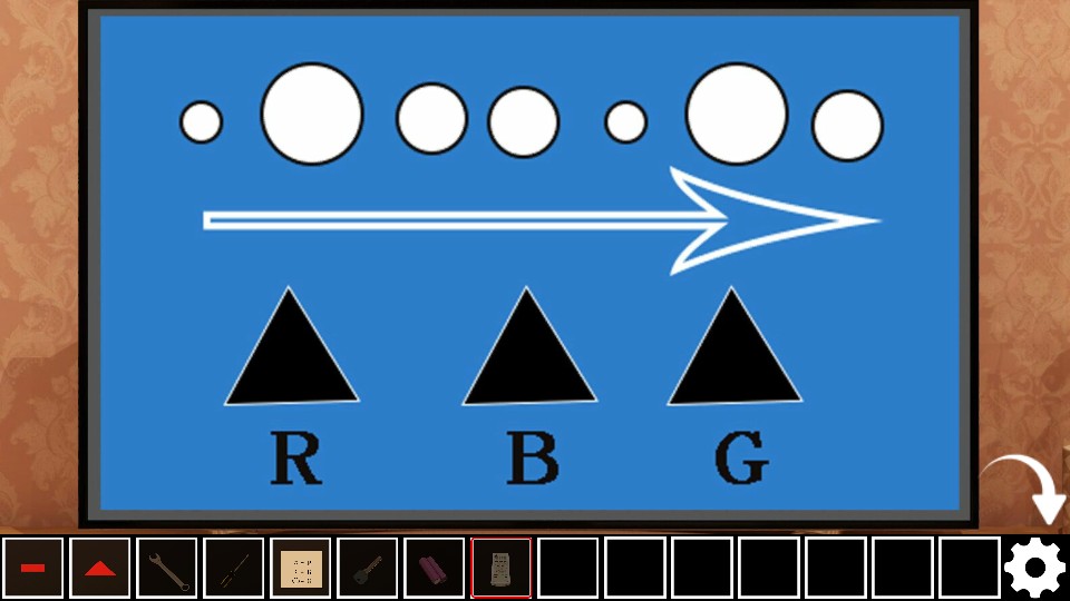 「メモ」をヒントにアルファベットを当てはめると『BGRRBGR』となり、これを下の▲に当てはめると、『中右左左中右左』となる。