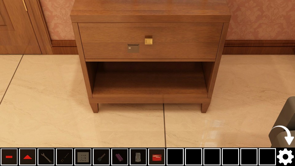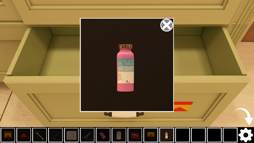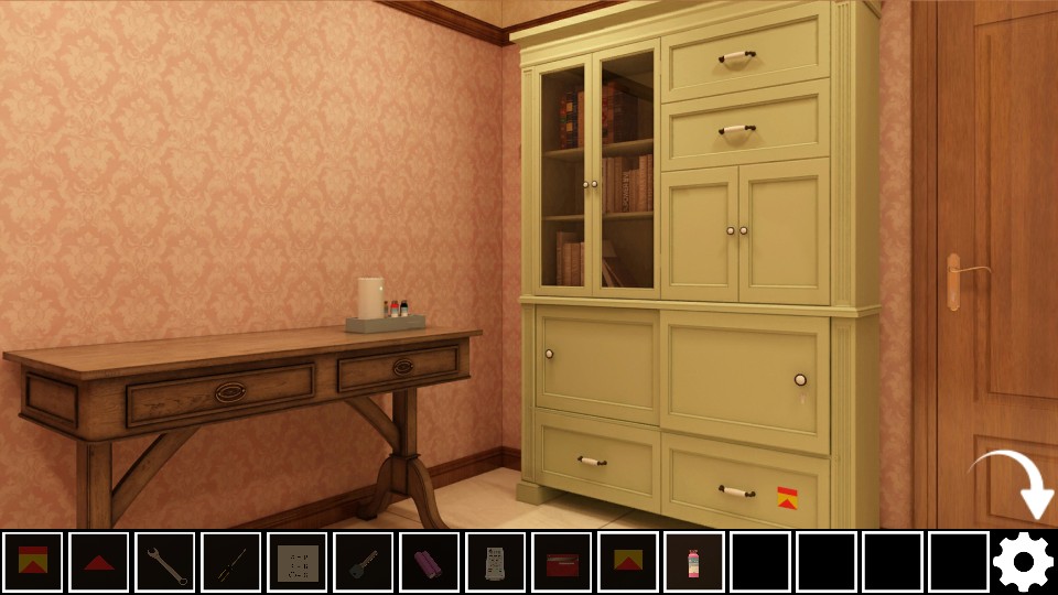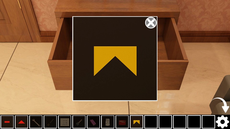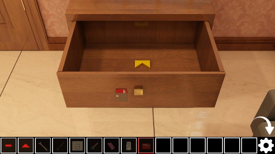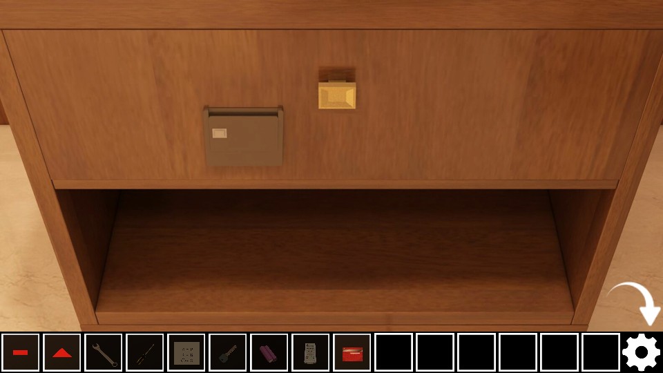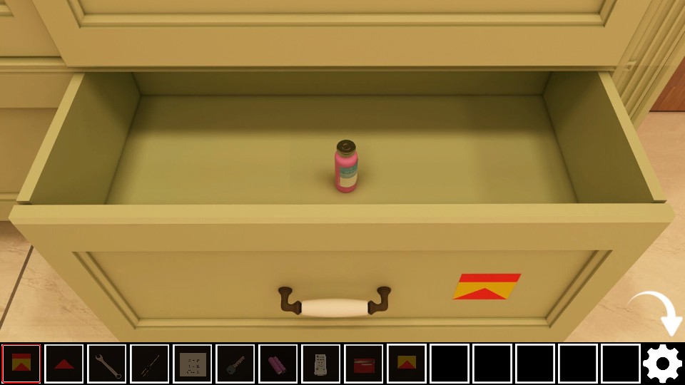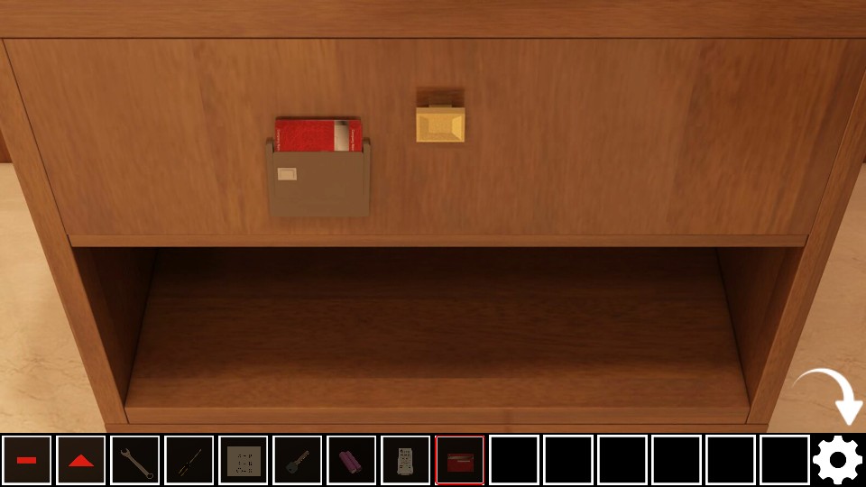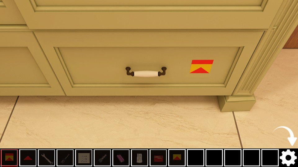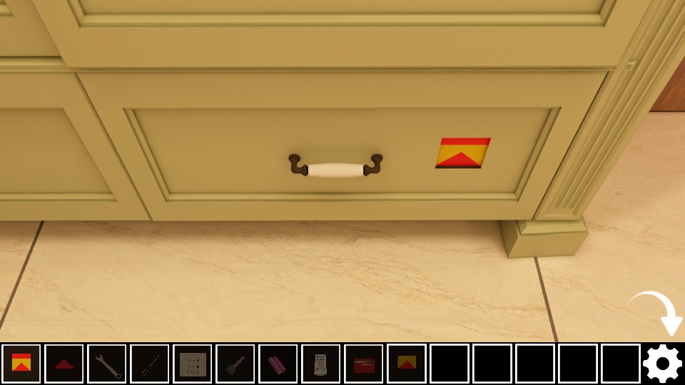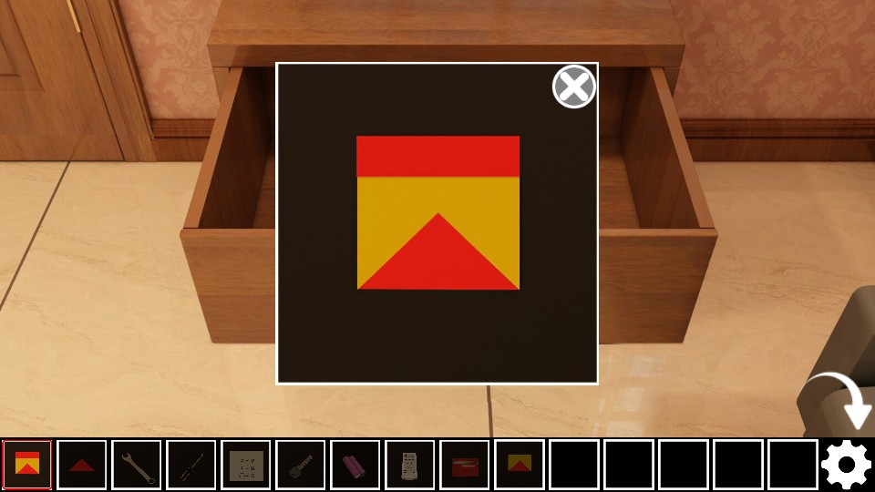 「四角い赤いブロック」と「三角の赤いブロック」を組み合わせて、左の棚の右下の引き出しを拡大。