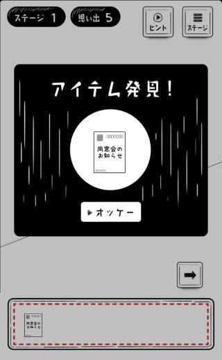 189~アノ日のできごと 無料 2.1 評価する 送信する MASK APP LLC 思い出5つめ 左に移動。 扉を開けて、「同窓会のお知らせ」を入手。 右に移動して、母親に「同窓会のお知らせ」を渡す。 棚から「カップ麺」を入手。 ステージ1 思い出1つめ 思い出2つめ 思い出3つめ 思い出4つめ 思い出5つめ ステージ2 思い出1つめ 思い出2つめ 思い出3つめ 思い出4つめ 思い出5つめ ステージ3 思い出1つめ 思い出2つめ 思い出3つめ 思い出4つめ 思い出5つめ ステージ4 思い出1つめ 思い出2つめ 思い出3つめ 思い出4つめ 思い出5つめ