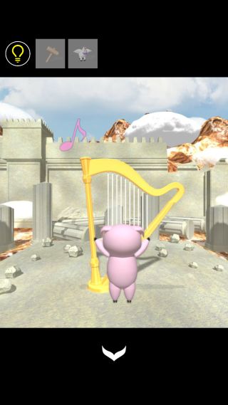 「リンゴ」を渡して、ピンクと黄色の音符が出てくるのを確認。