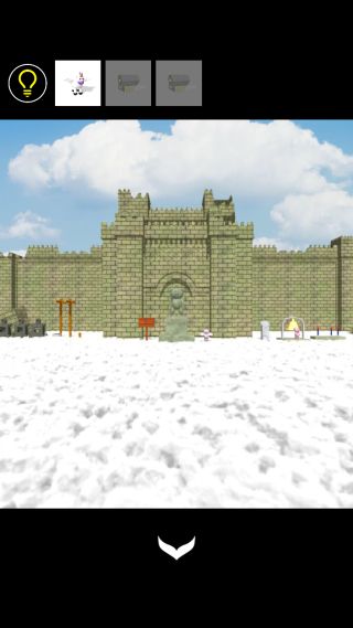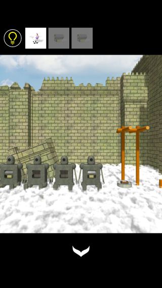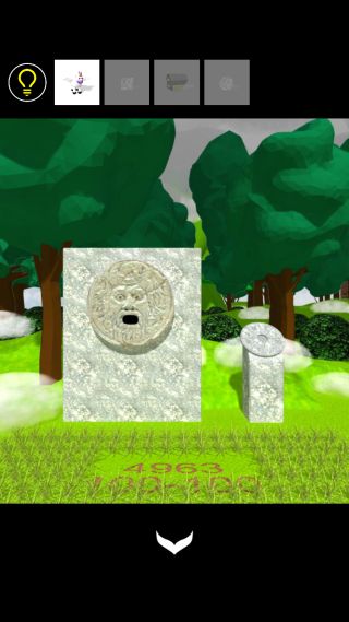 左の丸い石碑を拡大して、中央に「四角い石版」をはめる。
