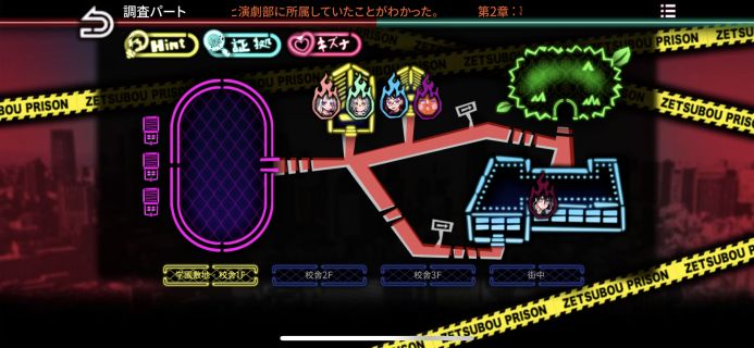 マップで、学園敷地・校舎1Fの中央上の体育館前へ。