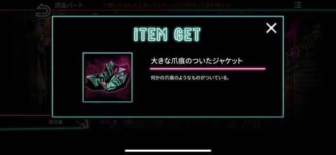 「大きな爪痕のついたジャケット」と、「大きな牙」を入手。