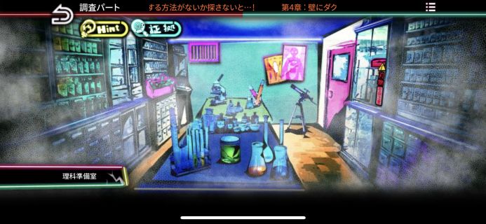 絶望プリズン 無料 4.4 評価する 送信する STUDIO WASABI 探索パート その1 理科準備室からの脱出 右奥の扉を調べる。 床に落ちている金づちを調べる。 「金づち」を入手して、右奥の扉を調べる。 左上のダクトを調べて、「ダクト」を入手。 左の工具箱にあるドライバーを調べる。 「ドライバー」を入手して、ダクトを調べる。 第1章 絶望の始まり 探索パート その1 探索パート その2 探索パート その3 第1回 審議 第1回 絶望裁判 第2章 道化の嘘 探索パート その1 探索パート その2 探索パート その3 第2回 審議 第2回 絶望裁判 第3章 虎の目にも涙 探索パート その1 探索パート その2 第3回 絶望裁判 第4章 絆と疑心 探索パート その1 探索パート その2 第5章 謎の少女 探索パート その1 探索パート その2 探索パート その3 探索パート その4 第4回 審議 第4回 絶望裁判 第6章 絶望プリズン 探索パート 第5回 審議