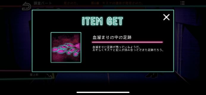 「血溜まりの中の足跡」と、「右手の血」を入手。