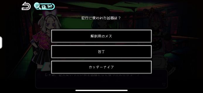 絶望プリズン 無料 4.4 評価する 送信する STUDIO WASABI 第5回 審議 『解剖用のメス』を選択する。 『冬月シロウ』を選択する。 『靴の裏を確認する』を選択する。 『シロウの靴の裏の状態』を選択する。 『鬼城キスケ』を選択する。 『自分でメスを刺したから』を選択する。 第1章 絶望の始まり 探索パート その1 探索パート その2 探索パート その3 第1回 審議 第1回 絶望裁判 第2章 道化の嘘 探索パート その1 探索パート その2 探索パート その3 第2回 審議 第2回 絶望裁判 第3章 虎の目にも涙 探索パート その1 探索パート その2 第3回 絶望裁判 第4章 絆と疑心 探索パート その1 探索パート その2 第5章 謎の少女 探索パート その1 探索パート その2 探索パート その3 探索パート その4 第4回 審議 第4回 絶望裁判 第6章 絶望プリズン 探索パート 第5回 審議